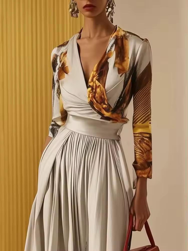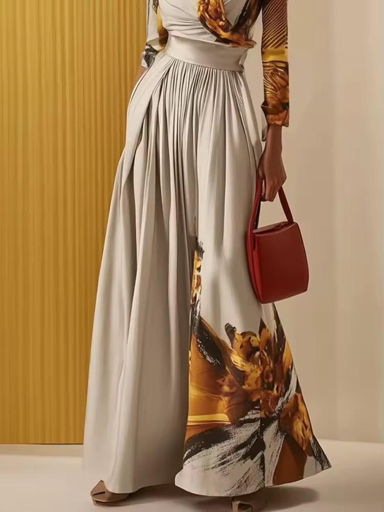 Stampa floreale astratta sui toni caldi dell’arancio, oro e nero