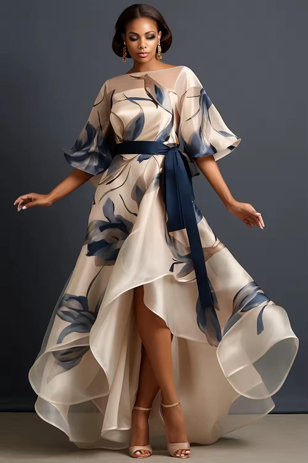 • Cintura: Fascia annodabile in vita, tono blu scuro